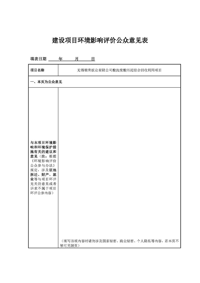 無(wu)錫銀榮板(ban)業有限公司酸洗廢酸污泥(ni)綜合(he)回收(shou)利用(yong)項目